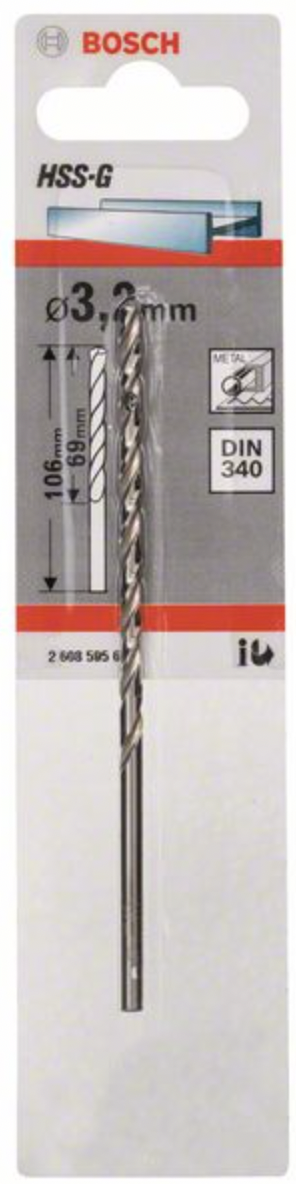 BOSCH  Burghiu metal HSS-G 3.2x69x106 mm