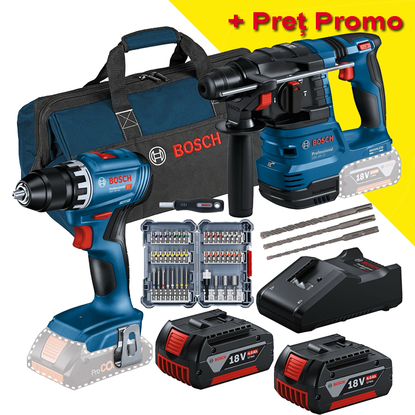 Promotii scule cu acumulator BOSCH professional Amestecatoare Aparat de perforat hidraulica Aparat de sertizat hidraulica Aparat de taiere hidraulica Aparate de presare Aspiratoare/suflatoare Capsatoare Ciocane demolatoare Ciocane rotopercutoare Debitator metal/beton Ferastraie circulare Ferastraie sabie Ferastraie stationare Ferastraie verticale Ferastrau cu banda Foarfece cu acumulator Freza ceramice moi Jachete cu incalzire Lanterne cu acumulator Masini de debitat si legat fier beton Masini de frezat nuturi Masini de frezat (oberfreze) Masini de gaurit/insurubat 12V Masini de gaurit/insurubat 18V Masini de gaurit/insurubat cu percutie 12V Masini de gaurit/insurubat cu percutie 18V Masini de gaurit unghiulare Masini de polisat Minifreze Multicuttere Nituitoare Pachete de scule 12V Pachete de scule 18V Pistol pentru cuie de beton Pistol pentru silicon Polizoare drepte (biax) Polizoare unghiulare Pompe de gresat/ungatoare Radio Rindele Slefuitoare Slefuitoare de beton Suflante cu aer cald Surubelnite cu clichet Surubelnite cu impact 12V Surubelnite cu impact 18V GDX Surubelnite cu impact 18V GDR Surubelnite cu impact 18V GDSBOSCH SET COMBI GSR 18V-45 + GBH 18V-22 + set de 45 de capete de şurubelniţă + set de 3 burghie pentru ciocan rotopercutor SDS plus-5 + 2 x GBA 18V 4.0Ah + GAL 18V-40 toate în cutie