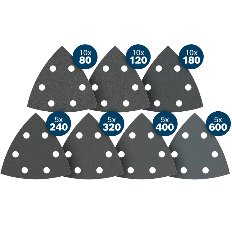 BOSCH Set 50 foi delta 93x93 mm, mixte R80/120/180/240/320/400/600, 6 orificii
