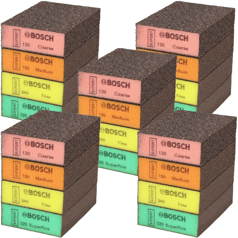 BOSCH  Set 20 bureti abrazivi EXPERT 69x98x26 mm (5xdur, 5xmediu, 5xfin, 5xsuperfin)