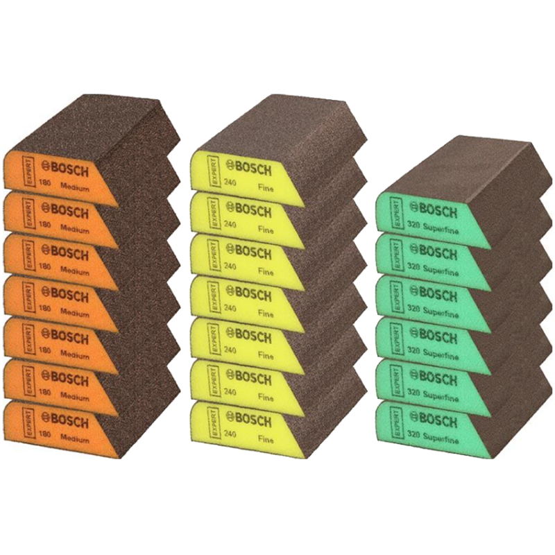 BOSCH Set 20 bureti abrazivi EXPERT 69x98x26 mm (7xmediu, 7xfin, 6xsuperfin)