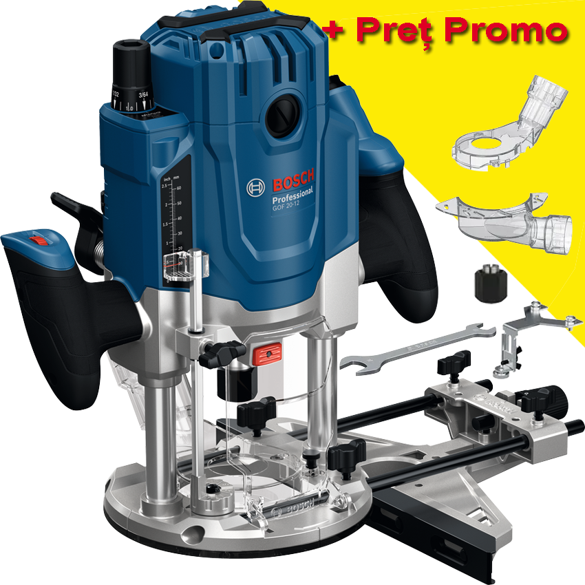 Promotii scule electrice BOSCH professional Amestecatoare Aspiratoare Ciocane demolatoare Ciocane rotopercutoare SDS-PLUS Ciocane rotopercutoare SDS-MAX Debitatoare metal Ferastraie circulare Ferastraie BCA Ferastraie verticale Ferastraie sabie Ferastraie stationare Foarfece de tabla si stantat Masini de polisat Masini electrice de insurubat Masini de frezat (oberfreze) Masini de frezat caneluri Masini de frezat nuturi Masini de gaurit Masini de gaurit cu diamant Masini de gaurit cu percutie Multicutter Pachete de scule Pistol de lipit Polizoare de banc Polizoare drepte (biax) Polizoare unghiulare mici Polizoare unghiulare mari Rindele Slefuitoare cu banda Slefuitoare cu vibratii Slefuitoare excentrice Slefuitoare de beton Slefuitoare pereti-tavan-gips carton Suflante cu aer cald Taietor bureteBOSCH GOF 20-12 Masina de frezat 2000 W