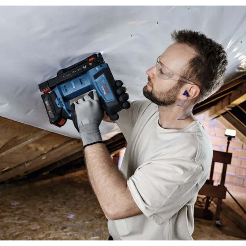 GTH 18V-14 este destinat instalării izolaţiei şipcilor, a barierei pentru vapori şi a foliei de construcţii, hârtiei de gudron, ţesăturilor, pieilor şi mochetelor pe suprafeţe din lemn şi substructuri