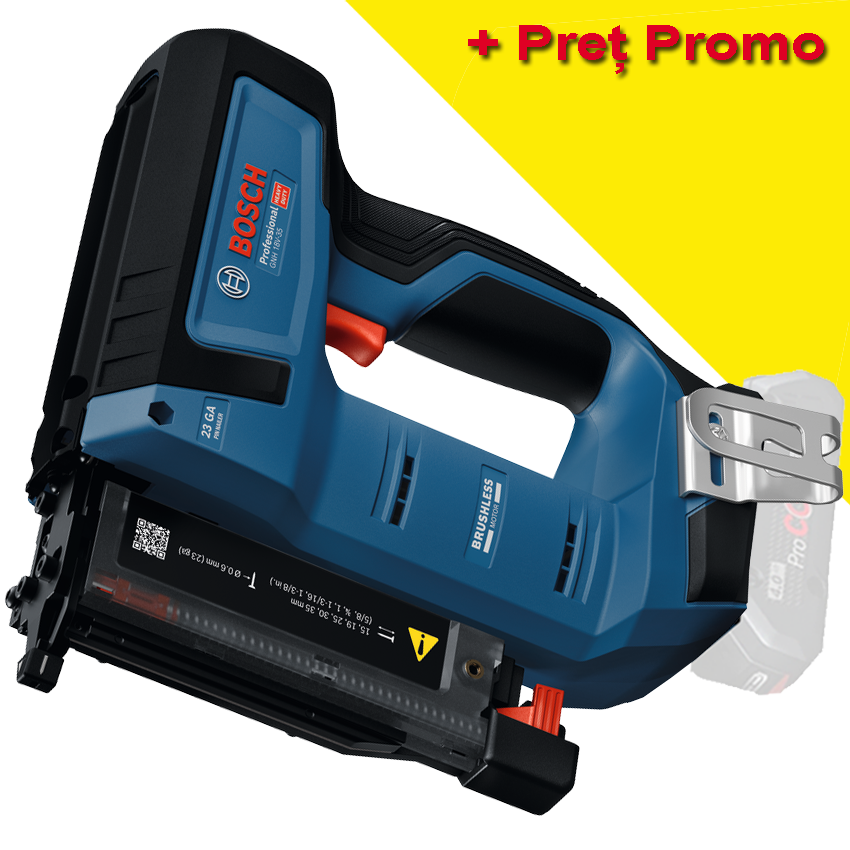 Pistolul de împuşcat cuie în lemn GNH 18V-35 este soluţia fără cablu de alimentare pentru fixare precisă, care nu lasă urme pe piesa de prelucrat datorită reculului redus şi a plăcuţelor fără deteriorare cu diferite zone de contact pentru diverse aplicaţii. Oferă rezultate perfecte de lucru chiar şi în unghiuri ciudate, cu ghidarea precisă a lamei şi a ştiftului. De asemenea, poţi introduce ştifturile în mod constant la putere maximă datorită motorului fără perii şi sistemului optimizat de arcuri elicoidale. Poţi avea garanţia că piesa de prelucrat este protejată împotriva deteriorării de către dispozitivul de blocare la golirea magaziei, care împiedică tragerea în gol atunci când magazia este goală. În plus, setarea adâncimii se realizează rapid şi uşor datorită funcţiei de reglare continuă a adâncimii sculei