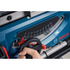 Ferăstrăul circular de banc cu alimentare cu cablu GTS 70-216 maximizează eficiența tăierii cu un motor robust de 1850 W, cea mai bună înălțime de tăiere din clasă de 70 mm și o capacitate de tăiere de 635 mm. Poți transporta cu ușurință acest ferăstrău foarte portabil cu o singură mână datorită designului său compact. Minimizează praful, menținând locul de muncă curat cu două porturi de praf Click & Clean. Proiectat pentru precizie, GTS 70-216 asigură tăieturi precise datorită riglei de ghidare pentru reglarea pe adâncime a suportului şi pinionului. De asemenea, dispune de un buton rotativ manual pentru micro-reglare simplă și precisă. Ghidarea reglabilă a înclinării simplifică tăieturile unghiulare precise, în timp ce tăieturile teșite fără scule de la -2° la 47° oferă versatilitate pentru diverse proiecte. În plus, acest ferăstrău este prevăzut cu zone de prindere convenabile pentru a fixa piesele de prelucrat pe masă. Și datorită unei fante în rigla de ghidare, poți monta o placă care te protejează de reculuri.