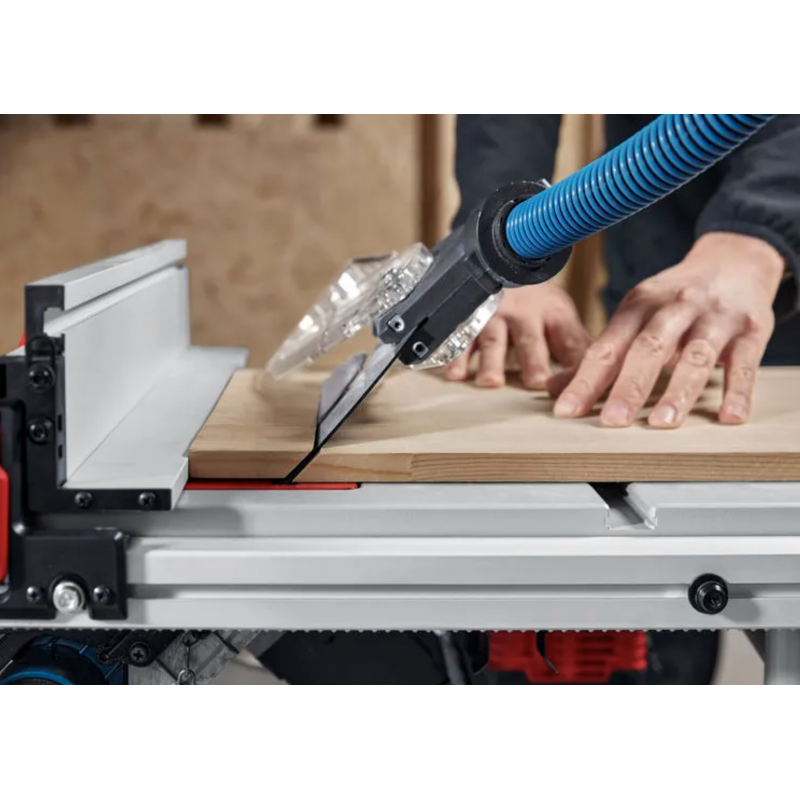 Ferăstrăul circular de banc cu acumulator GTS 18V-70 maximizează eficiența tăierii datorită unui motor fără perii care oferă puterea unui ferăstrău circular de banc cu cablu pentru cea mai mare mobilitate. Oferă cea mai bună înălțime de tăiere din clasă de 70 mm și o capacitate de tăiere de 635 mm. Poți transporta cu ușurință acest ferăstrău foarte portabil cu o singură mână datorită designului său compact. Minimizează praful, menținând locul de muncă curat cu două porturi de praf Click & Clean. Proiectat pentru precizie, GTS 18V-70 asigură tăieturi precise datorită riglei de ghidare pentru reglarea pe adâncime a suportului şi pinionului. De asemenea, dispune de un buton rotativ manual pentru micro-reglare la tăieturile transversale. Ghidarea reglabilă a înclinării simplifică tăieturile unghiulare precise, în timp ce tăieturile teșite fără scule de la -2° la 47° oferă versatilitate pentru diverse proiecte. În plus, acest ferăstrău este prevăzut cu zone de prindere convenabile pentru a fixa piesele de prelucrat pe masă. Și datorită unei fante în rigla de ghidare, poți monta o placă care te protejează de reculuri.