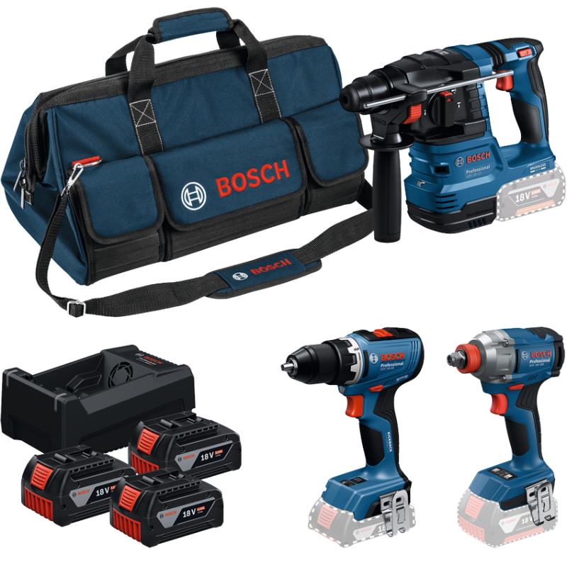 BOSCH Kit 3 scule 18V GSR + GDX + GBH + 3x5.0Ah + GAL 12V/18V-80 + Geanta textil