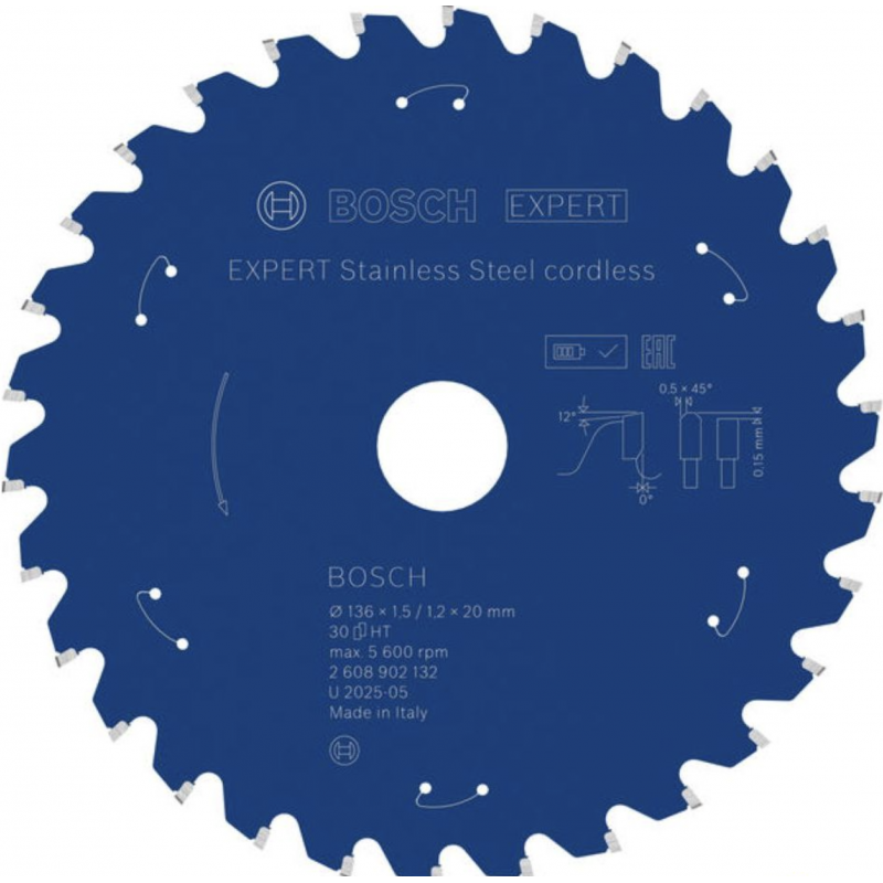 BOSCH Disc Expert for Stainless Steel 136x20x30T special pentru circulare cu acu