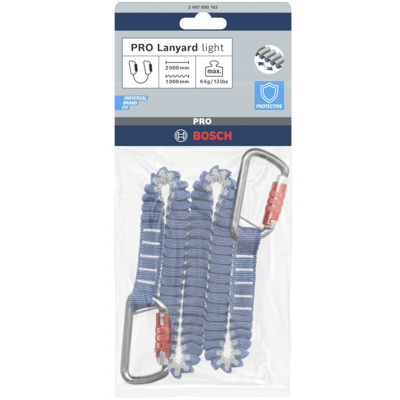 BOSCH  Coarda pentru prevenirea caderii, cu doua carabiniere, pentru sarcina usoara, de maxim 6 kg, 1100 mm detensionat