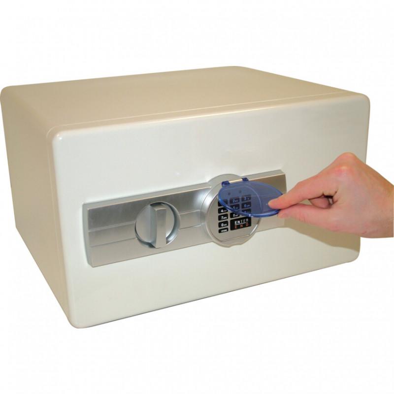 All steel construction. Resistant to most hand and mechanical tool attacks. Four digit pin code can be changed. Integral plastic key cover. Audible correct/incorrect PIN number indicator. Offers one hour fire protection at 1000. Complete with hold down kit for cash and jewellery insurance ratings*. Low battery indicator light. Internal protection to door hinges. Ideal to store valuable items that require fire protection. Conforms to: EN50081 : 1992 and EN61000-6-2:2001 Underwriter's Laboratories (UL-72 standard class 103, 1o3T). Internal dimensions: (H)145 x (W)330 x (D)215mm. External dimensions: (H)250 x (W)430 x (D)355mm. Weight: 30kg. *Consult your local insurance provider for cash and jewellery ratings.
